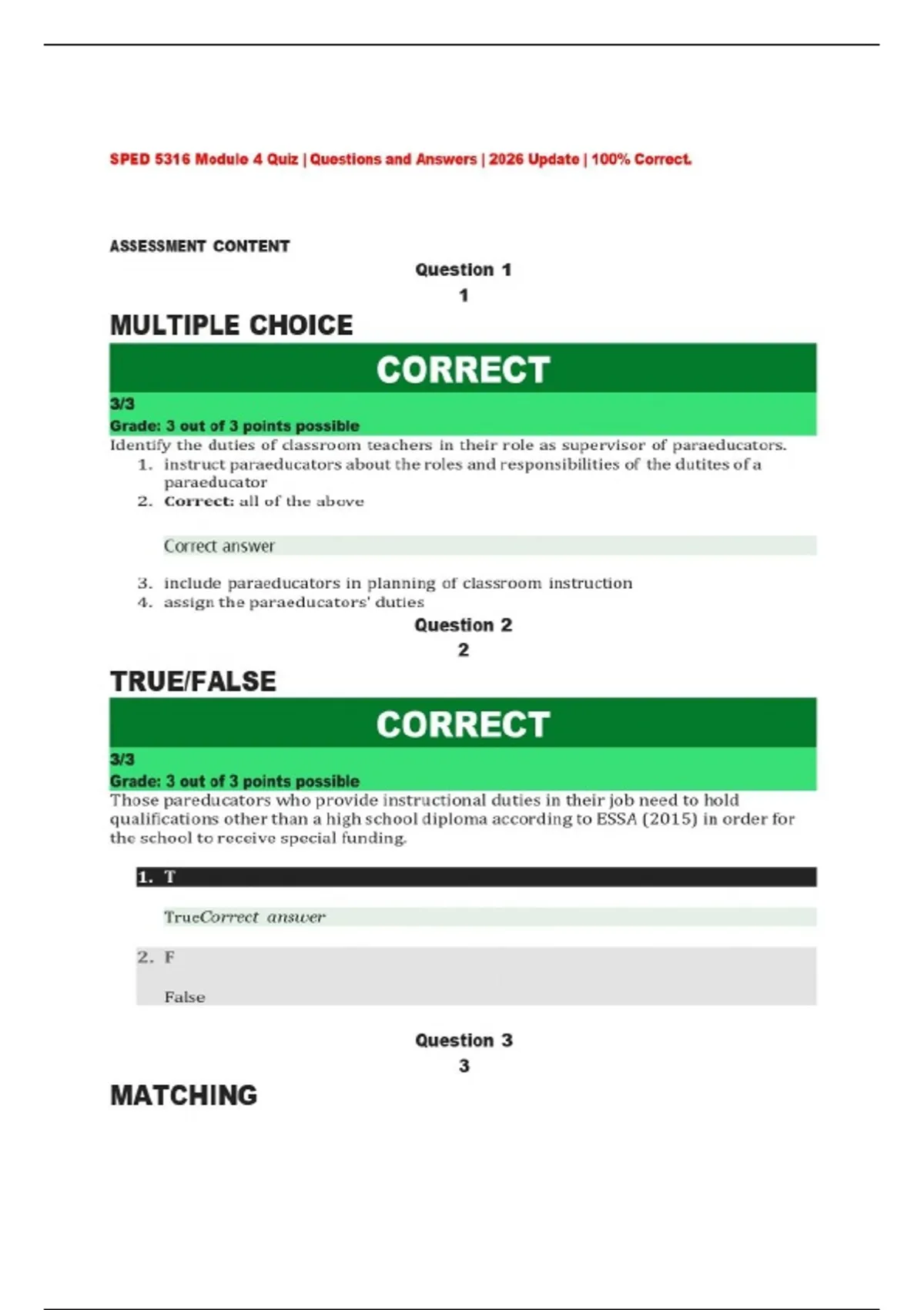 SPED 5316 Module 4 Quiz | Questions and Answers | 2026 Update | 100% Correct.