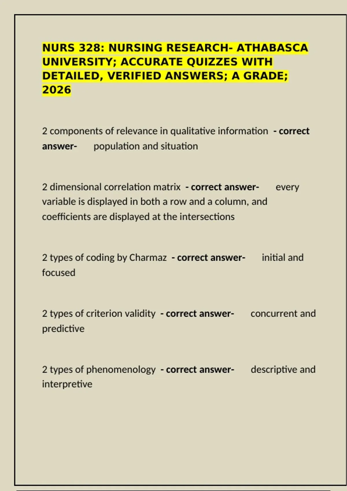 NURS 328: NURSING RESEARCH- ATHABASCA