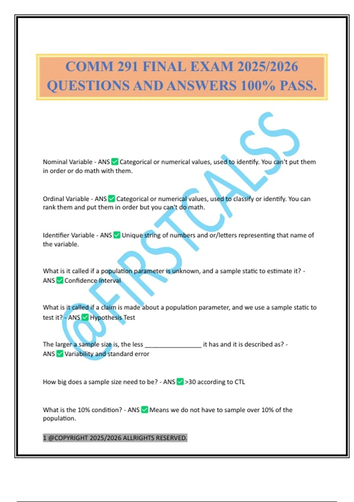 COMM 291 FINAL EXAM 2025/2026