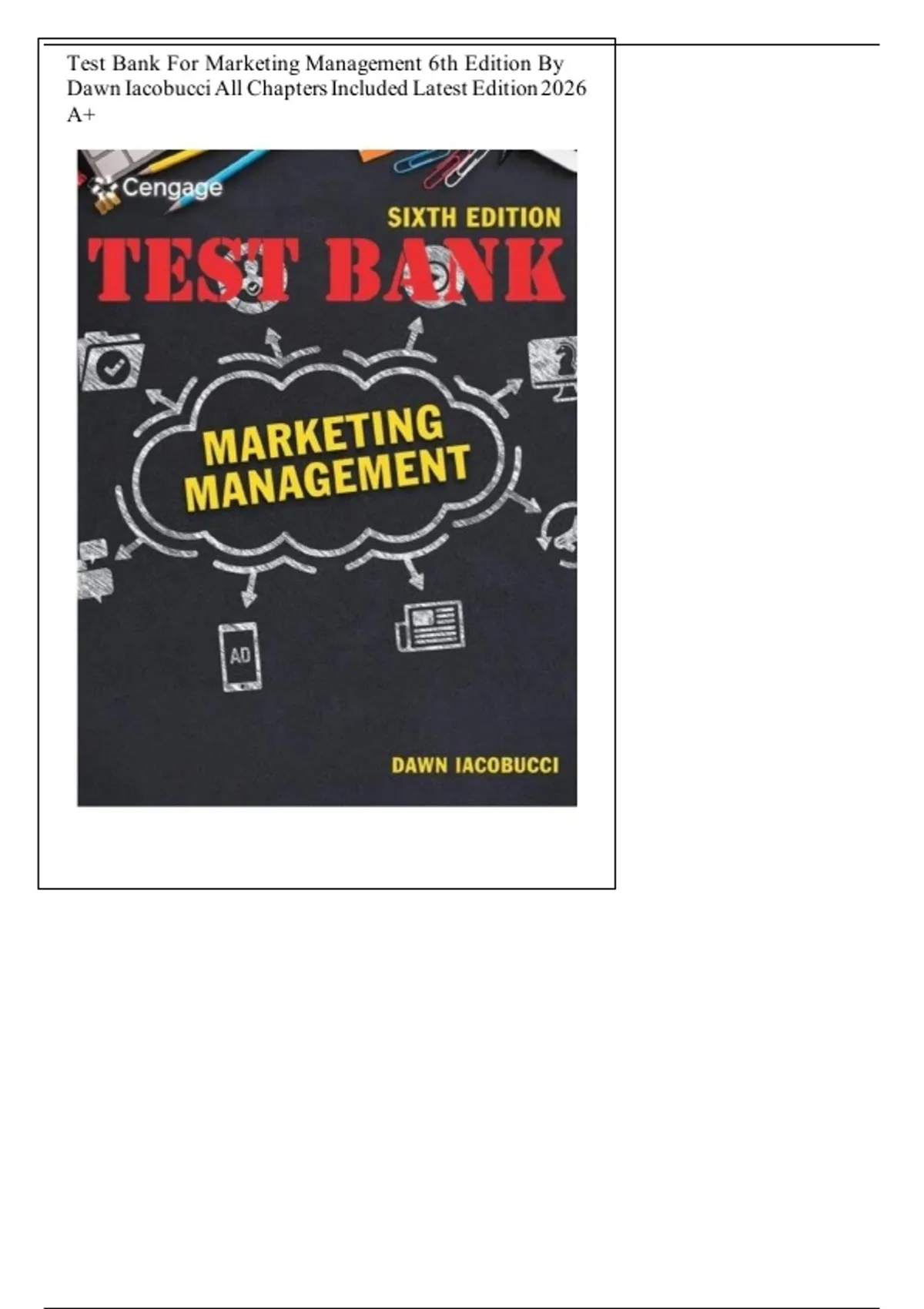 Test Bank For Marketing Management 6 th Edition By Dawn Iacobucci Full