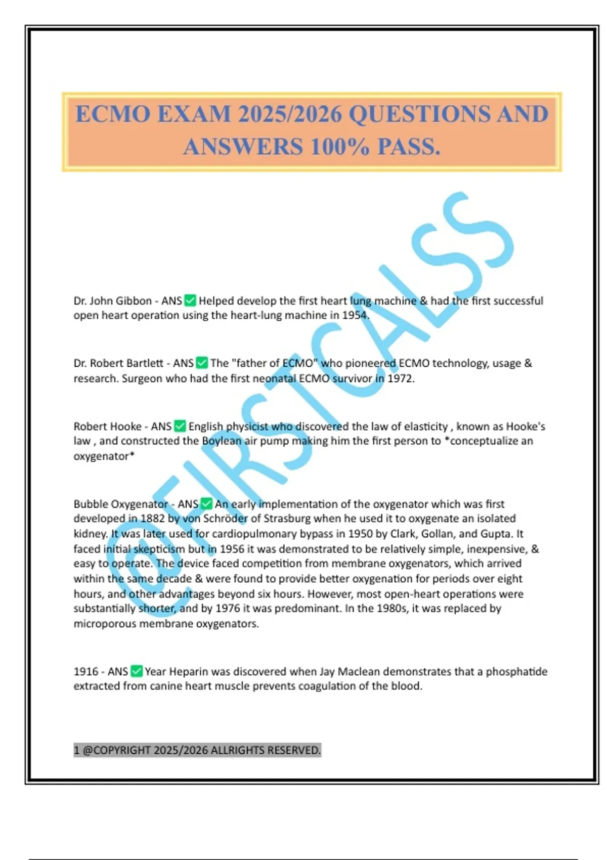ECMO EXAM 2025/2026 QUESTIONS AND ANSWERS 100% PASS.
