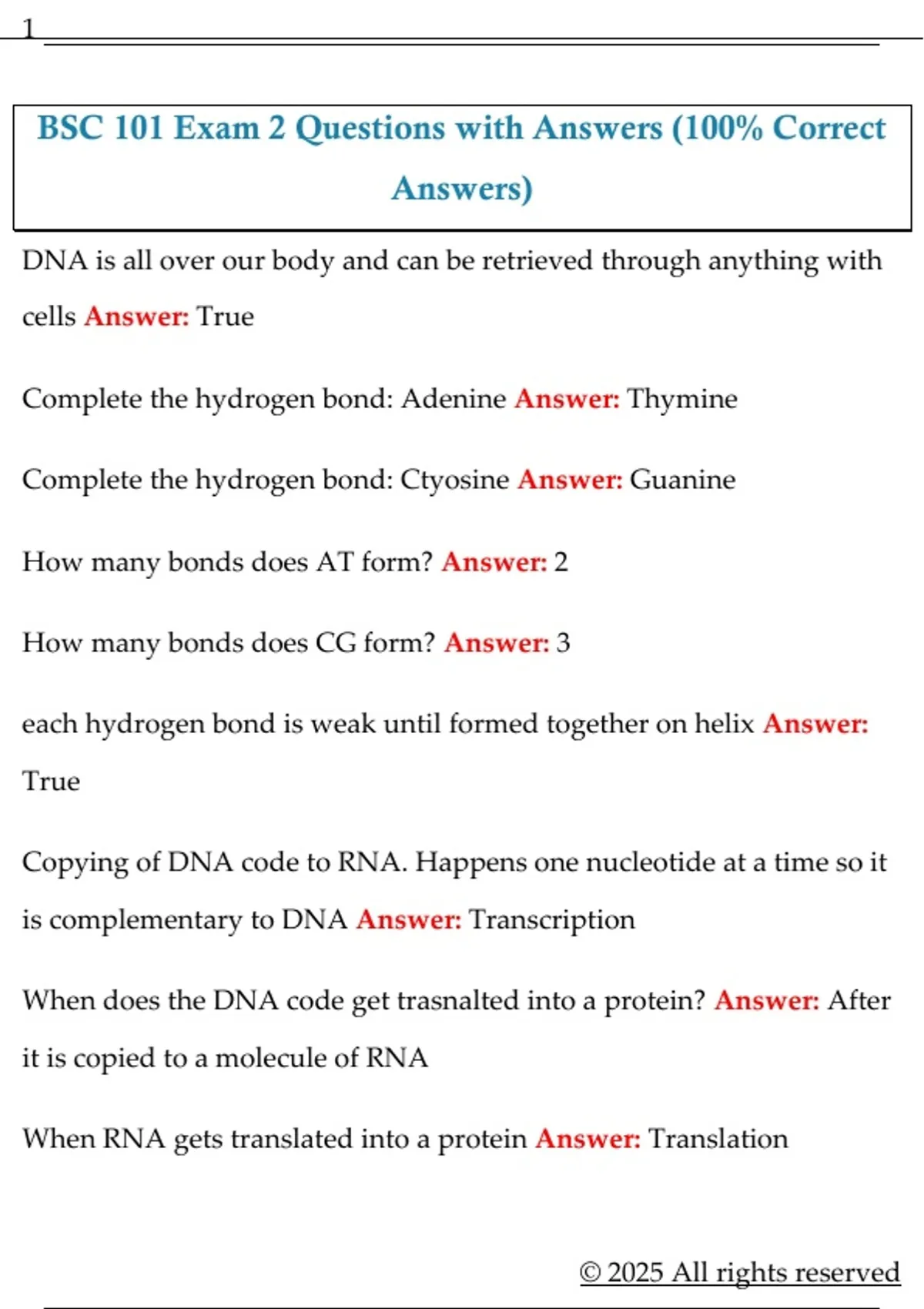 BSC 101 Exam 2 Questions with Answers (100% Correct