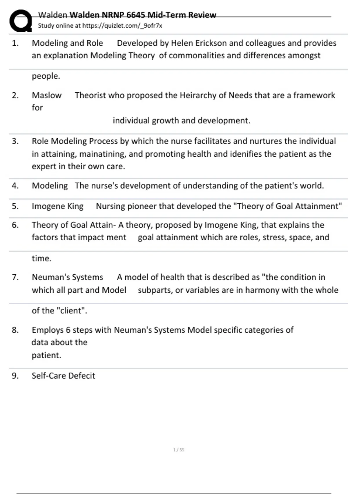 , Walden Walden NRNP 6645 Mid-Term Review