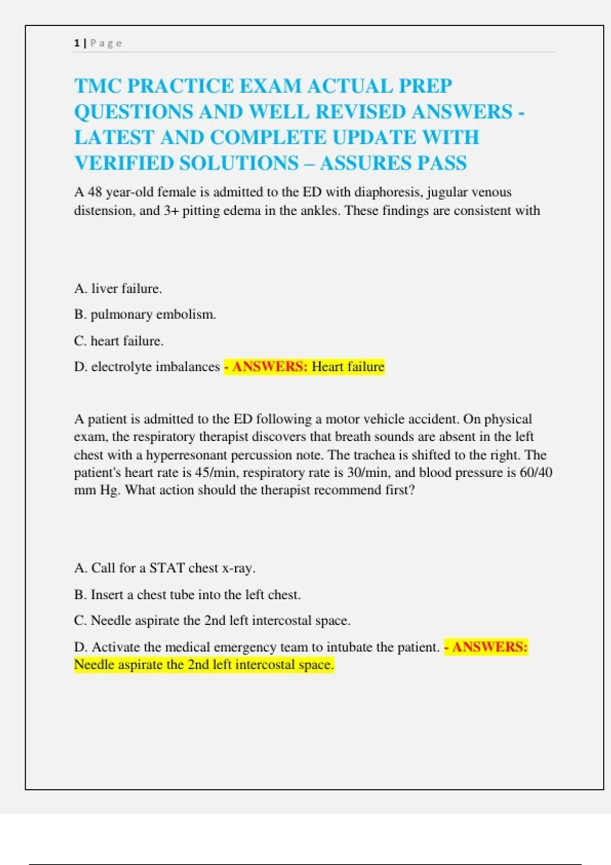 TMC PRACTICE EXAM ACTUAL PREP
