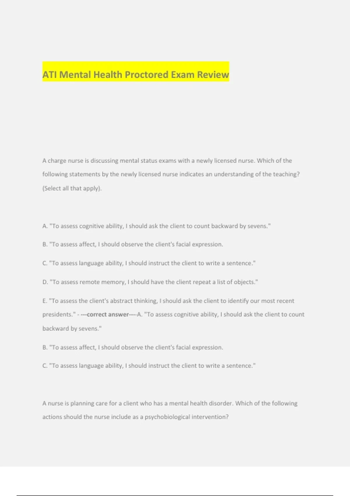 presidents." - ---correct answer----A. "To assess cognitive ability, I should ask the client to count