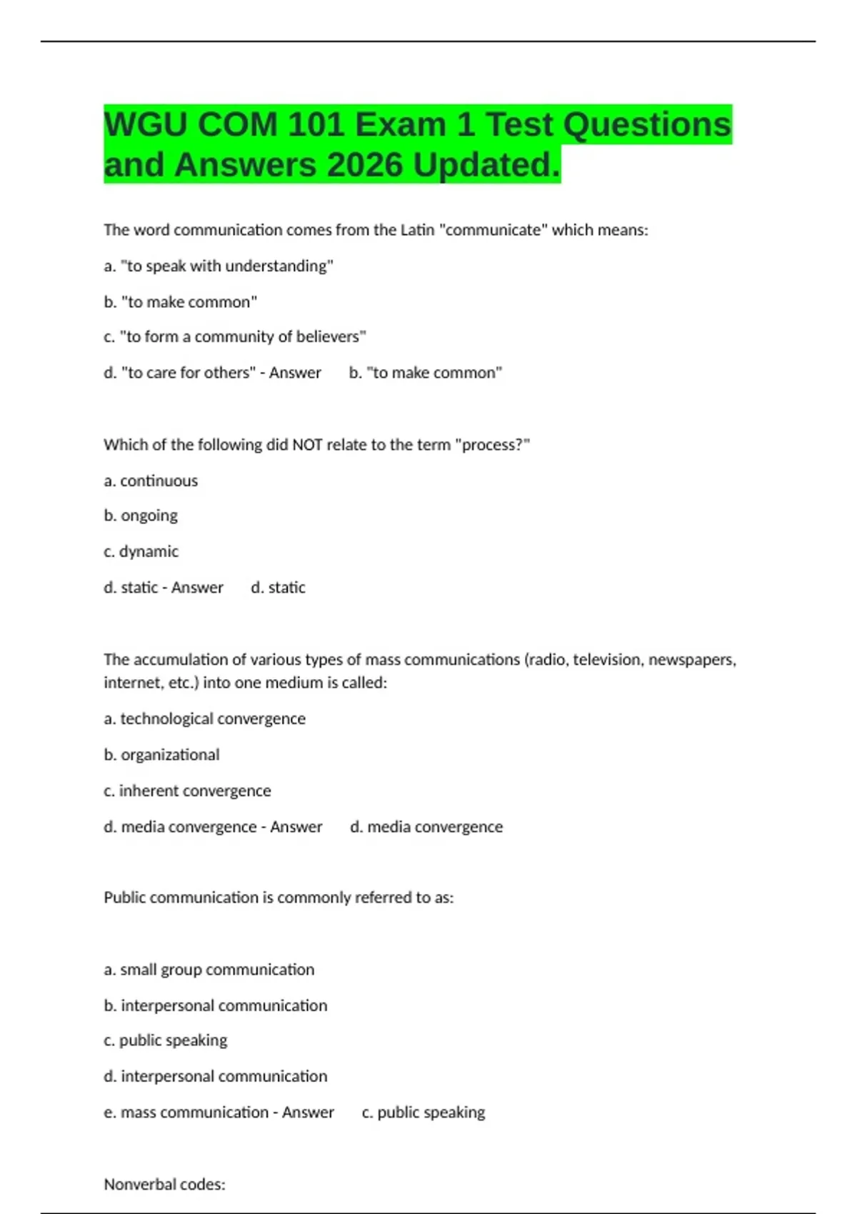 WGU COM 101 Exam 1 Test Questions and Answers 2026 Updated.