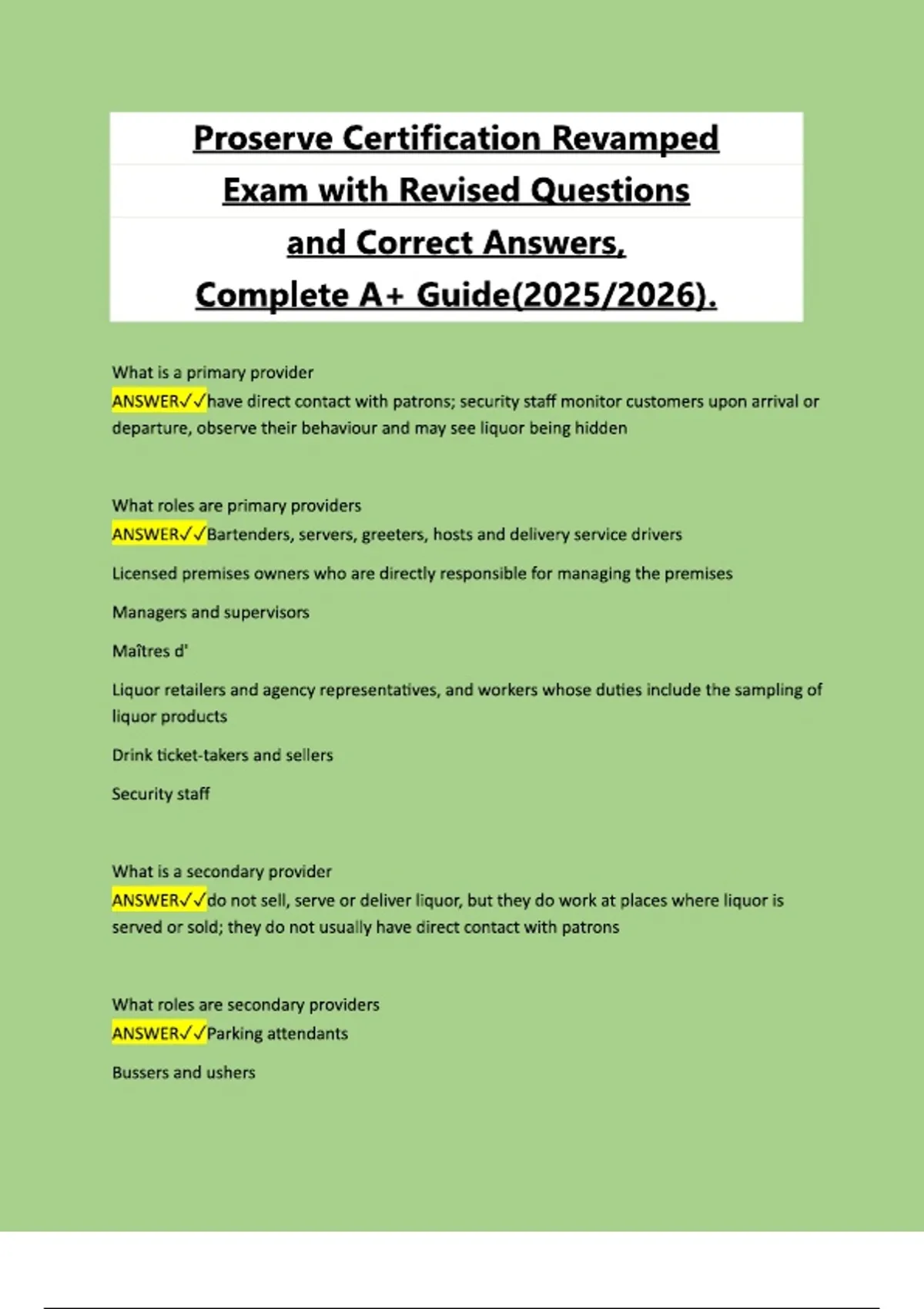 Proserve Certification Revamped Exam with Revised Questions and Correct Answers, Complete A+ Guide(2025/2026). Proserve Certification Revamped Exam with Revised Questions and Correct Answers, Complete A+ Guide(2025/2026). Proserve Certification Revamped Exam with Revised Questions and Correct Answers, Complete A+ Guide(2025/2026).