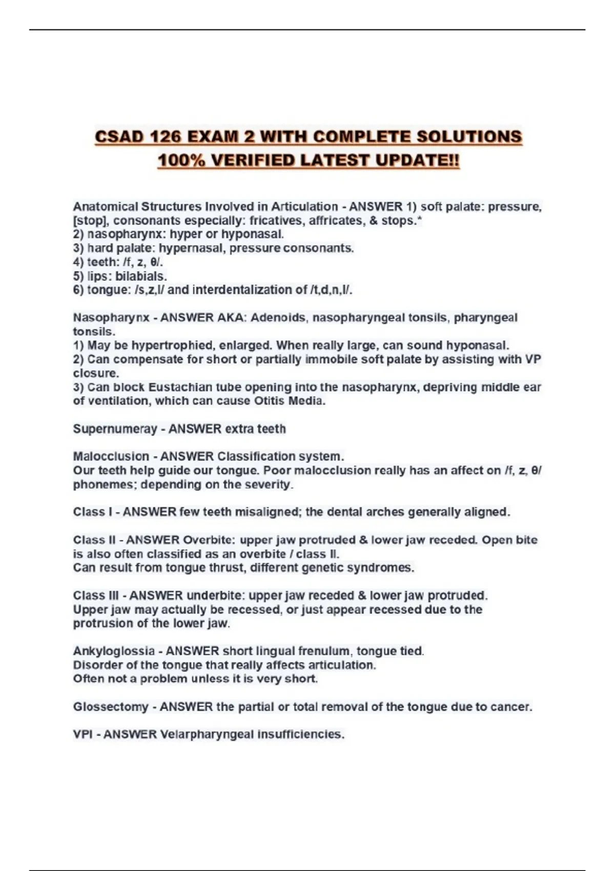 CSAD 126 EXAM 2 WITH COMPLETE SOLUTIONS 100% VERIFIED LATEST UPDATE!!...