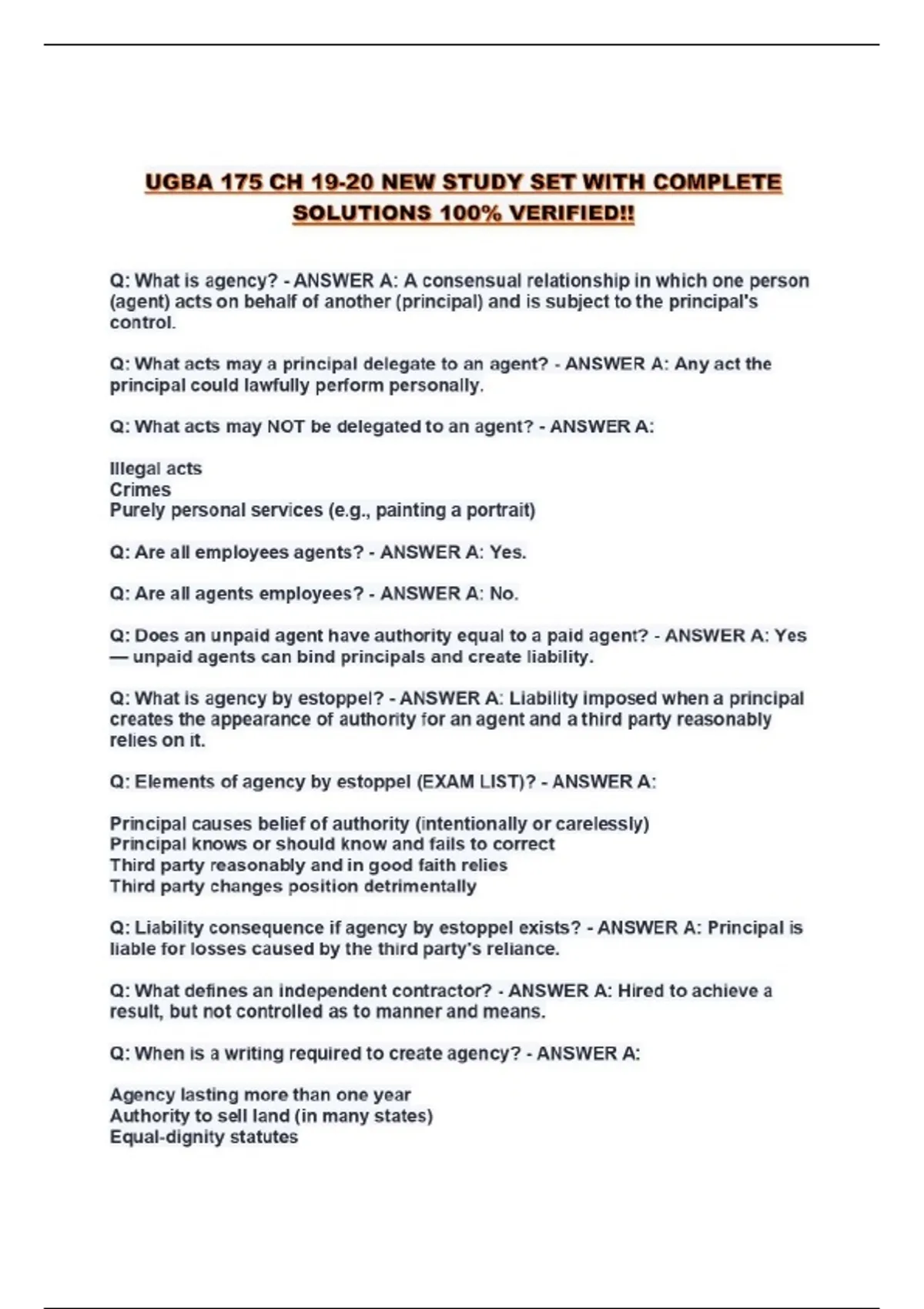 UGBA 175 CH 19-20 NEW STUDY SET WITH COMPLETE SOLUTIONS 100% VERIFIED!!...