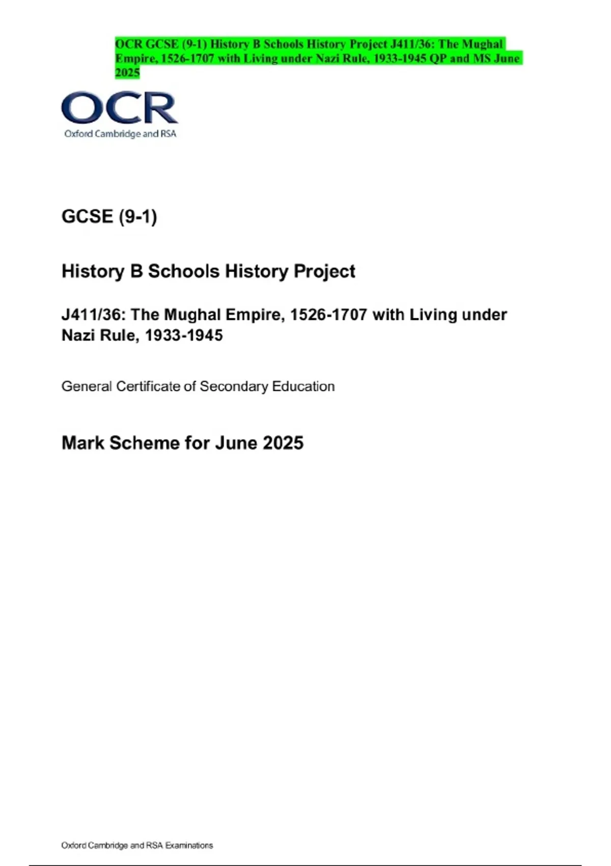 OCR GCSE (9-1) History B Schools History Project J411/36: The Mughal Empire, with Living under Nazi Rule, QP and MS June 2025