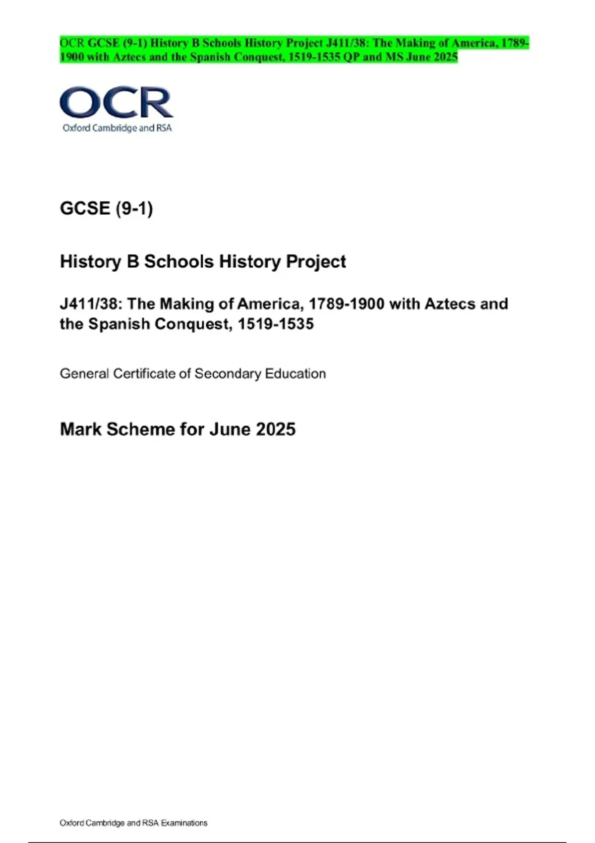 OCR GCSE (9-1) History B Schools History Project J411/38: The Making of America, with Aztecs and the Spanish Conquest, QP and MS June 2025