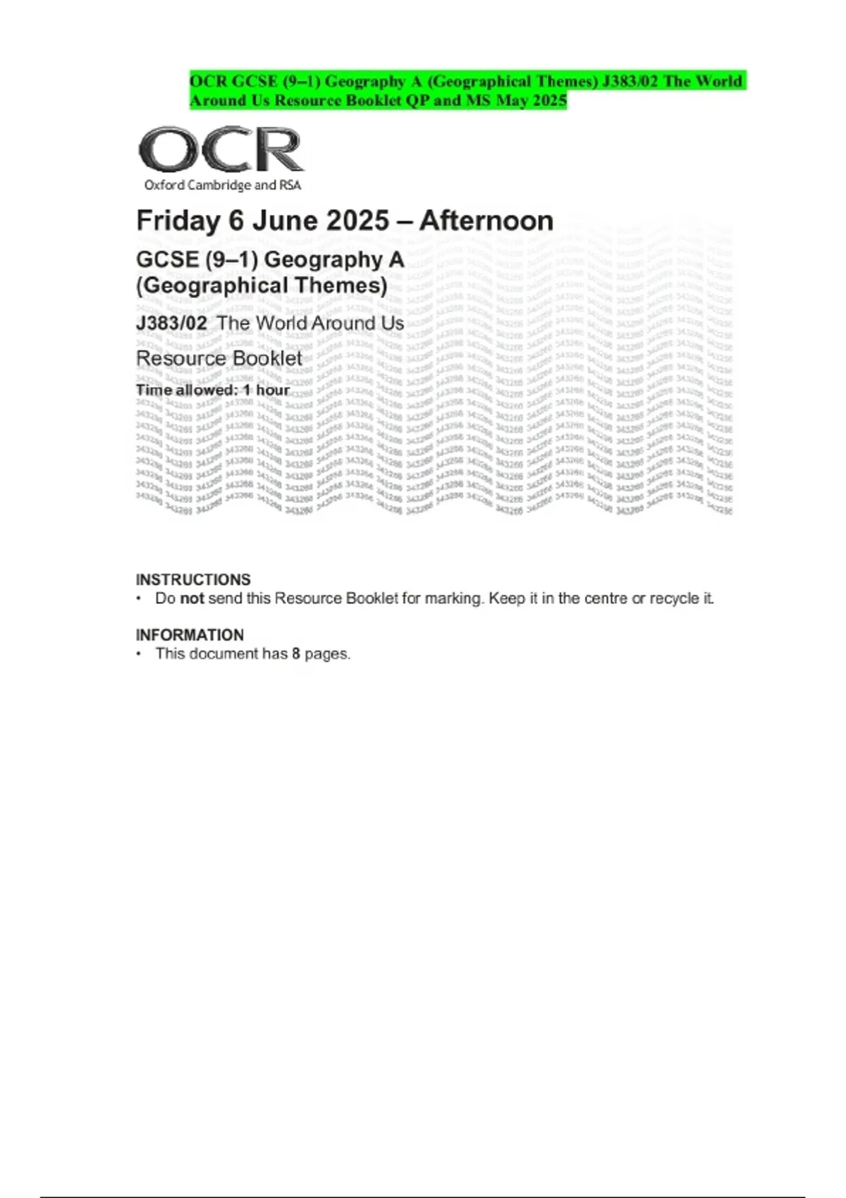 OCR GCSE (9–1) Geography A (Geographical Themes) J383/02 The World Around Us Resource Booklet QP and MS May 2025