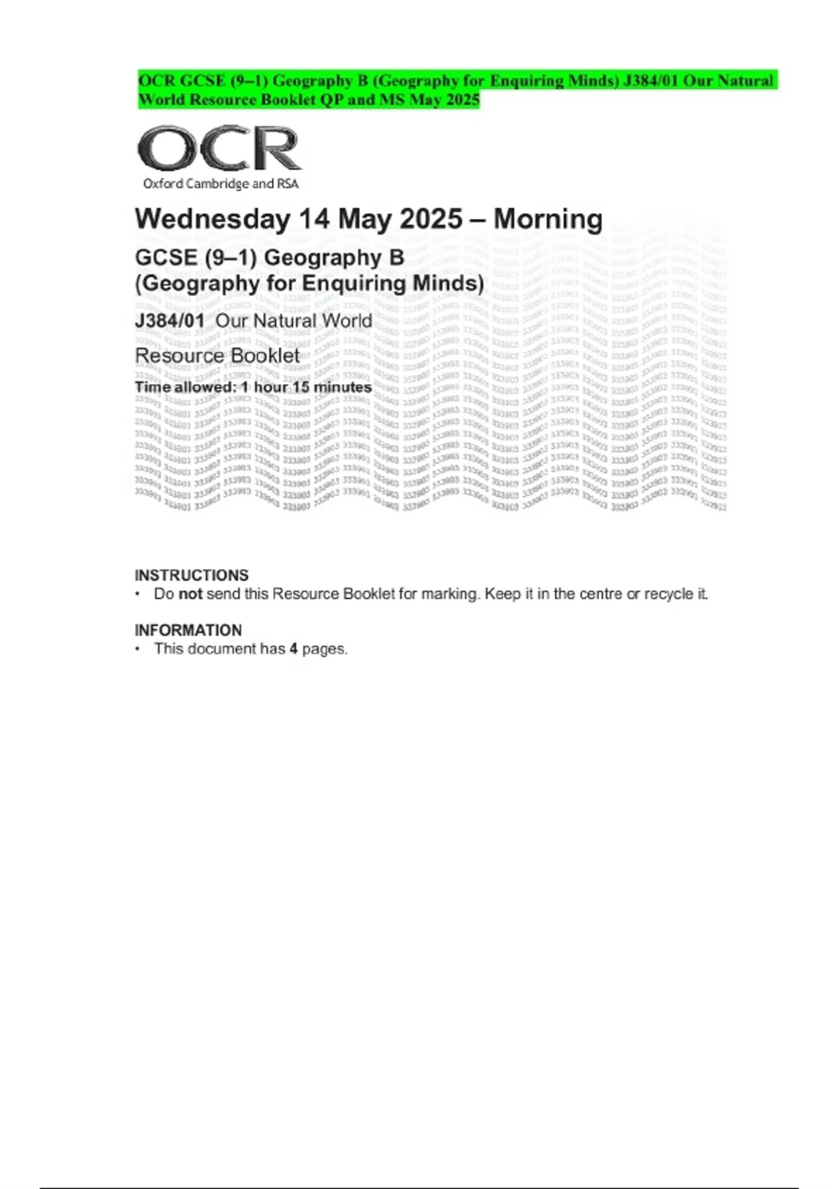 OCR GCSE (9–1) Geography B (Geography for Enquiring Minds) J384/01 Our Natural World Resource Booklet QP and MS May 2025