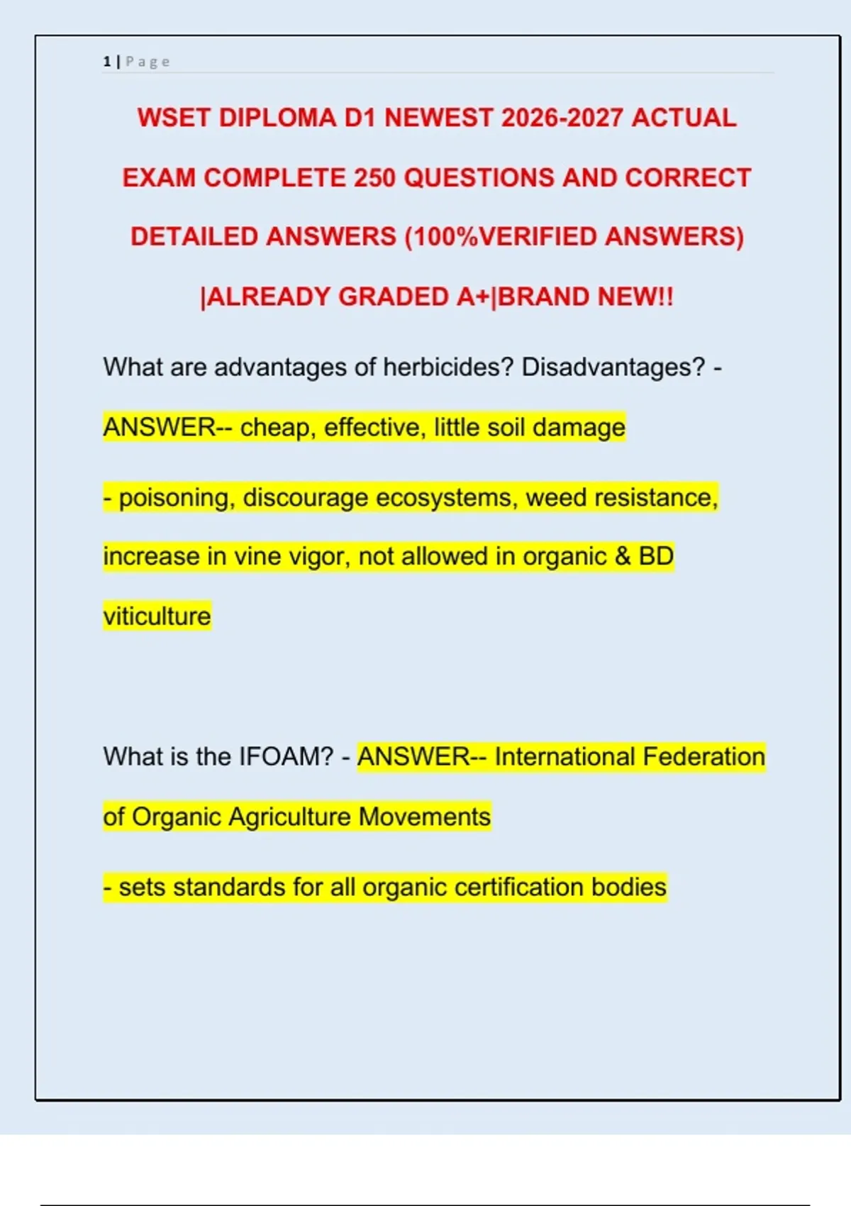 WSET DIPLOMA D1 NEWEST 2026-2027 ACTUAL