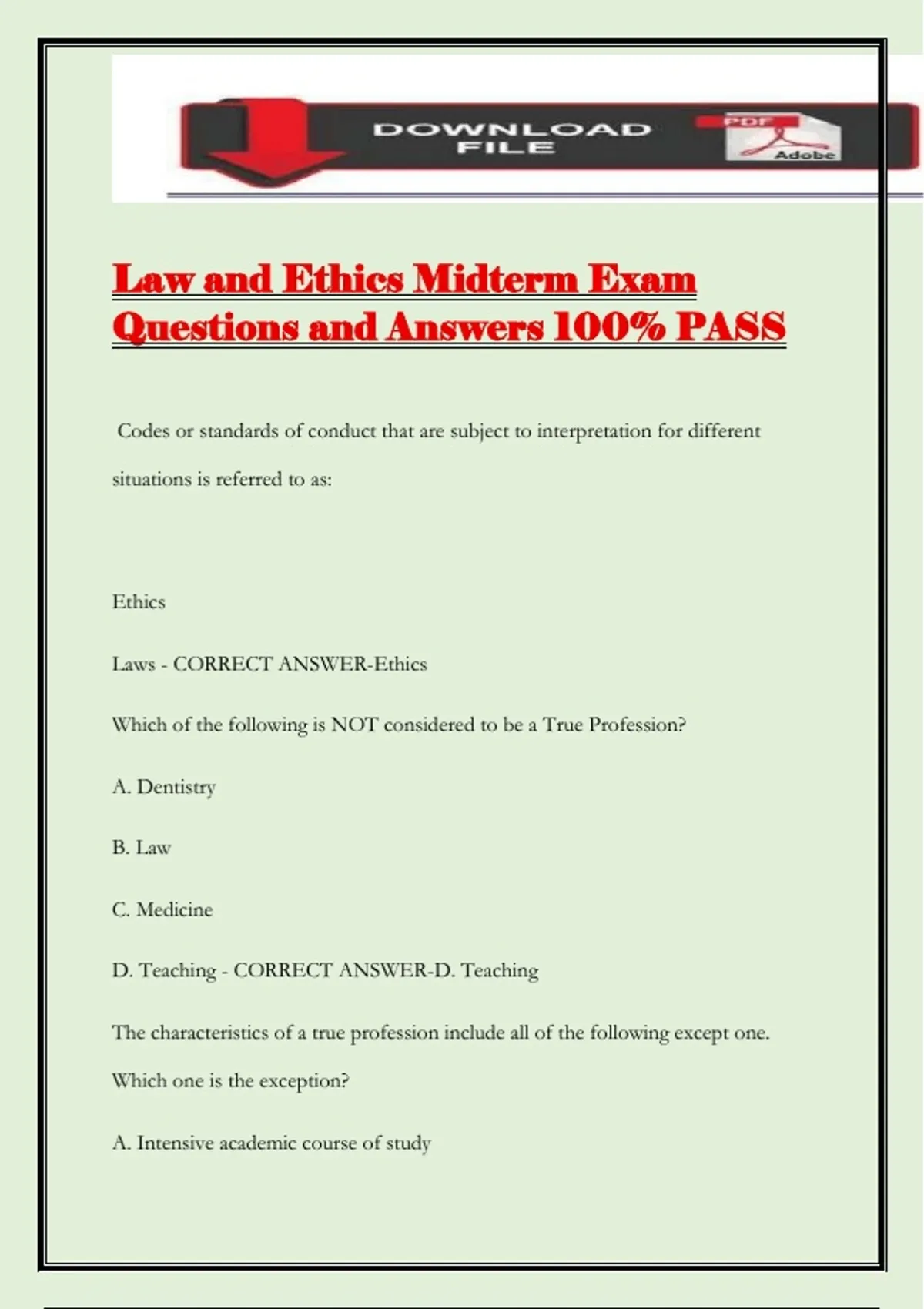 Law and Ethics Midterm Exam Questions and Answers 100% PASS