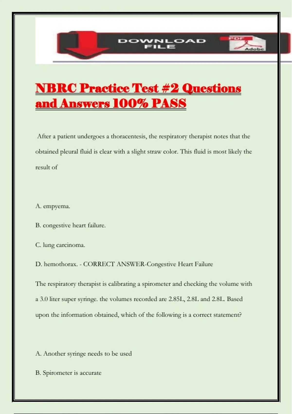 NBRC Practice Test #2 Questions