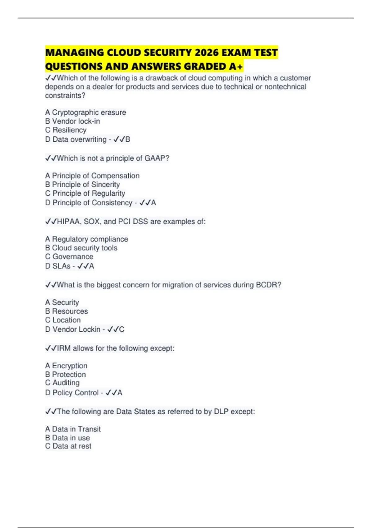 ✔✔Which of the following is a drawback of cloud computing in which a customer