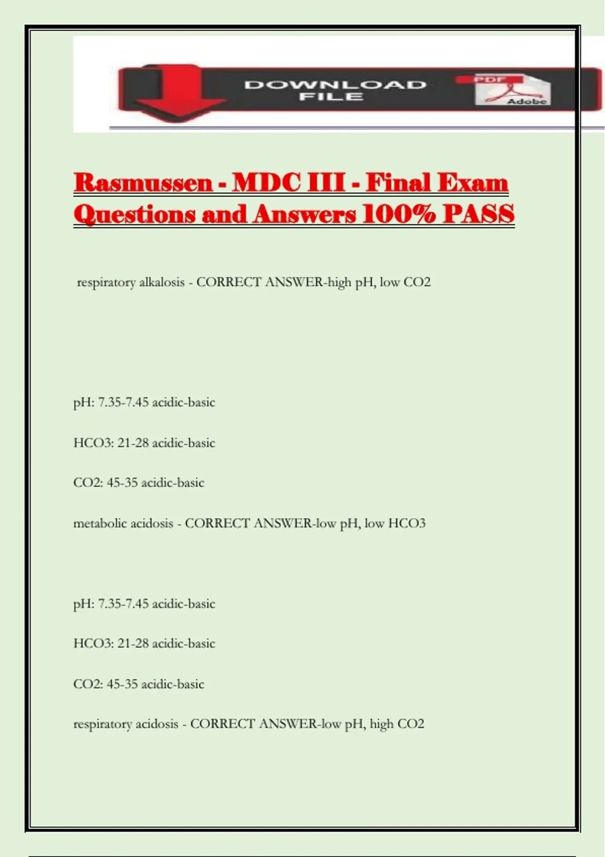 metabolic acidosis - CORRECT ANSWER-low pH, low HCO3