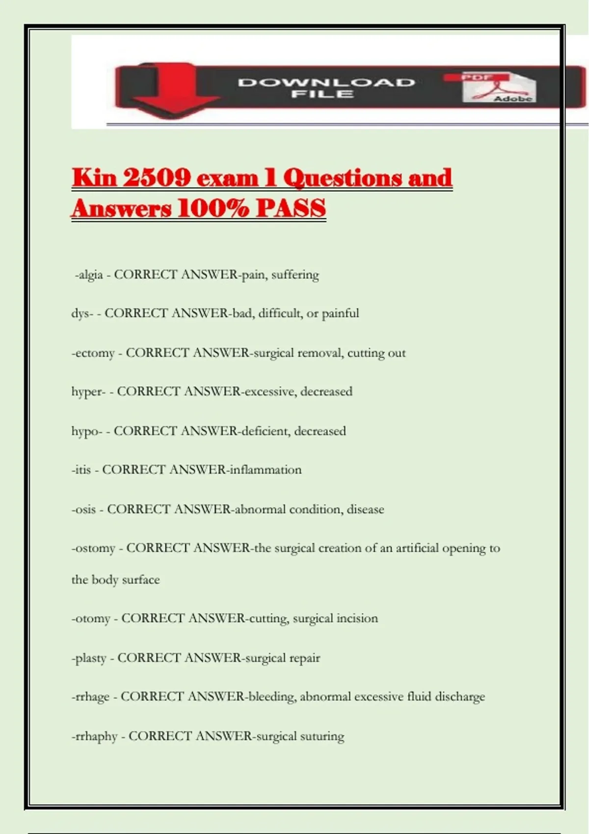 -itis - CORRECT ANSWER-inflammation