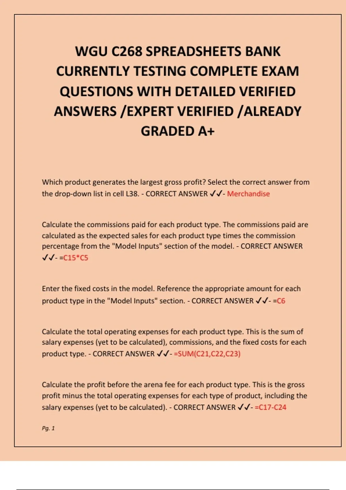 product type. - CORRECT ANSWER ✔✔- =SUM(C21,C22,C23)