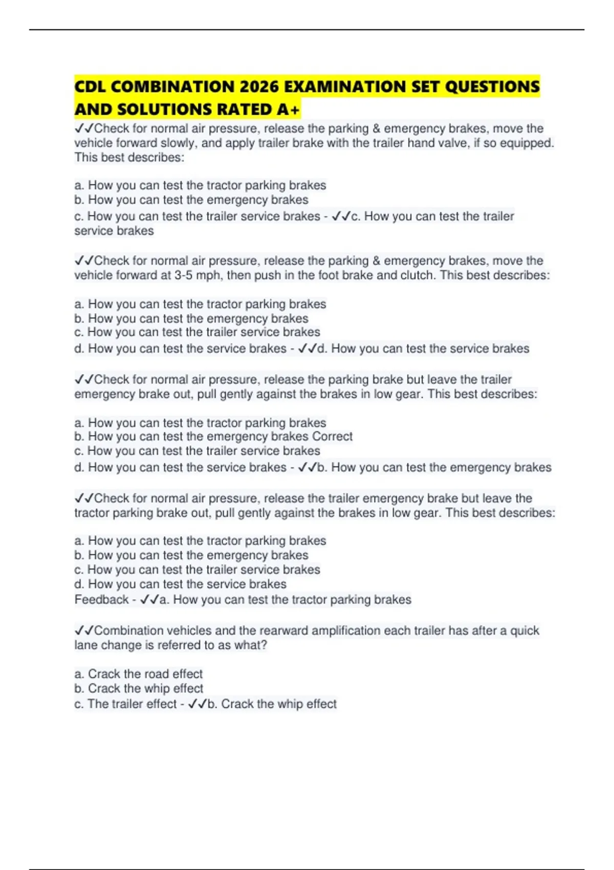 CDL COMBINATION 2026 EXAMINATION SET QUESTIONS AND SOLUTIONS RATED A+