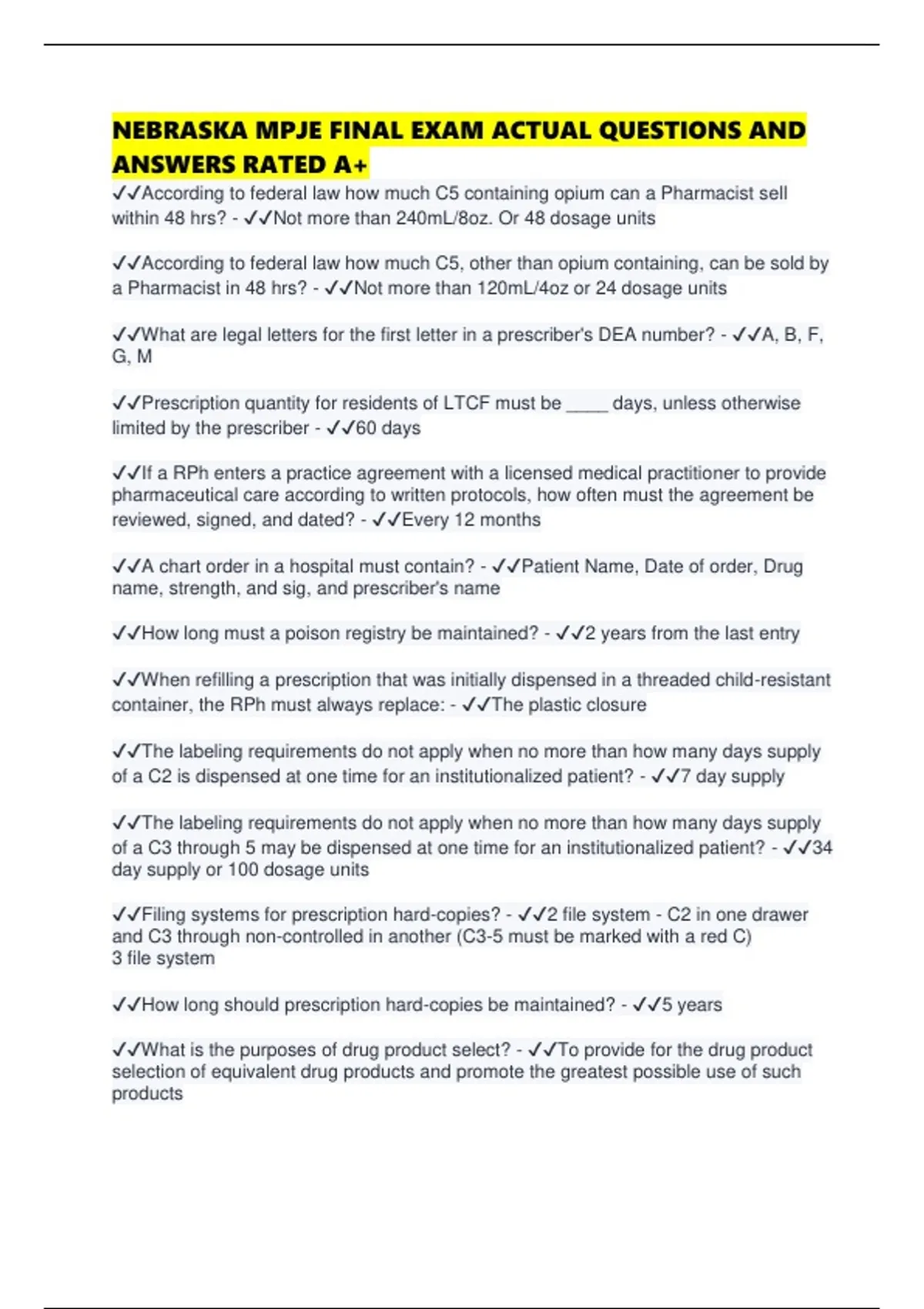✔✔According to federal law how much C5 containing opium can a Pharmacist sell
