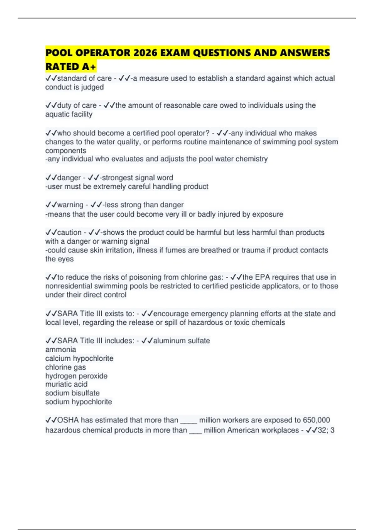 ✔✔SARA Title III includes: - ✔✔aluminum sulfate