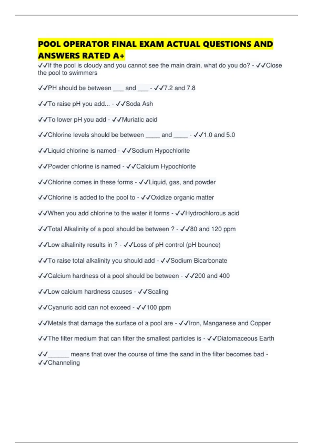 ✔✔Calcium hardness of a pool should be between - ✔✔200 and 400