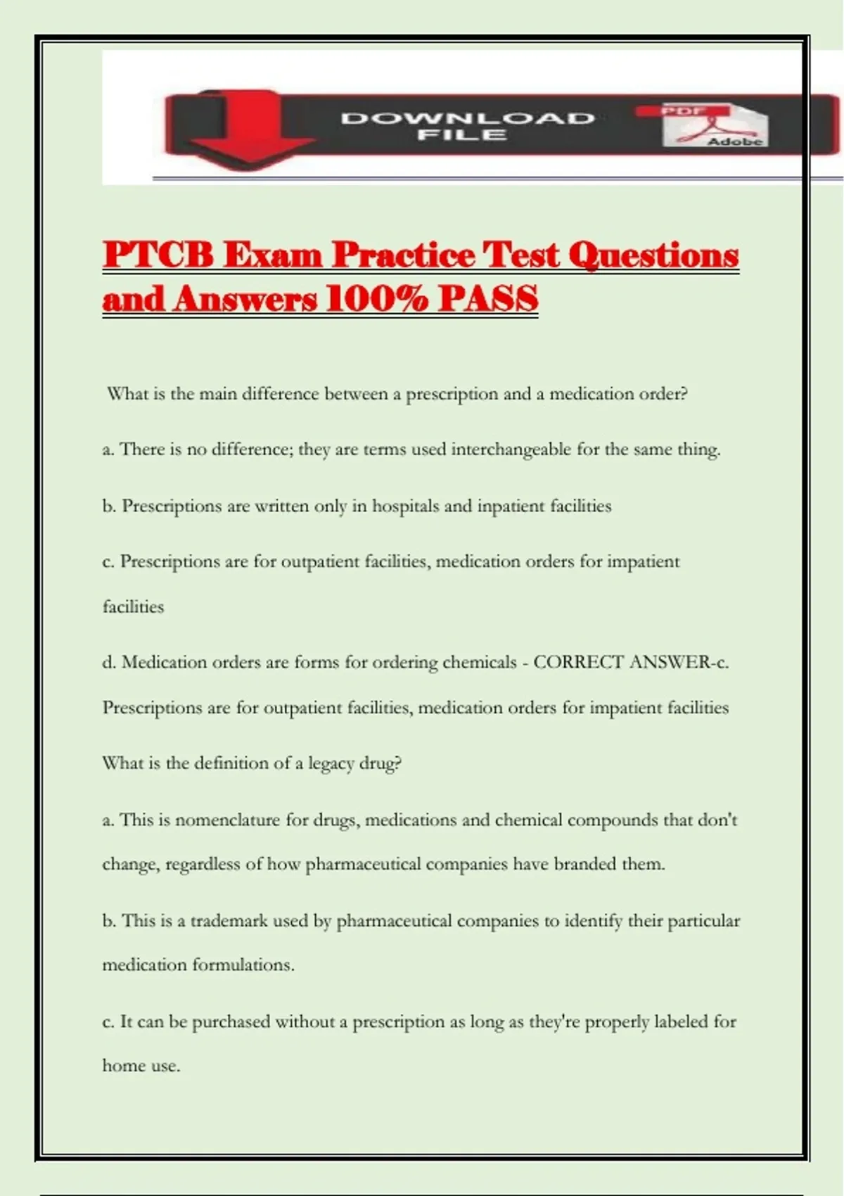 PTCB Exam Practice Test Questions and Answers 100% PASS