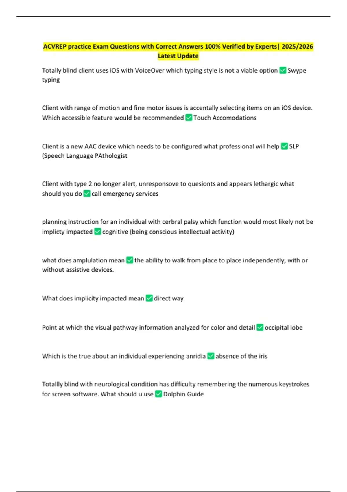 ACVREP practice Exam Questions with Correct Answers 100% Verified by Experts| 2025/2026