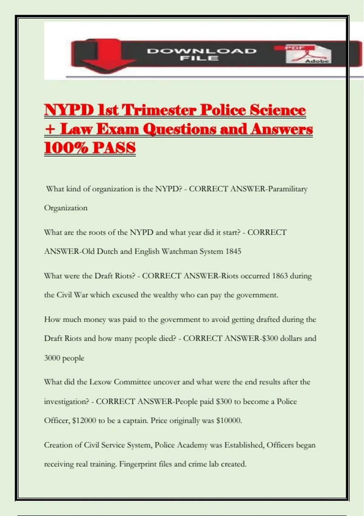 investigation? - CORRECT ANSWER-People paid $300 to become a Police