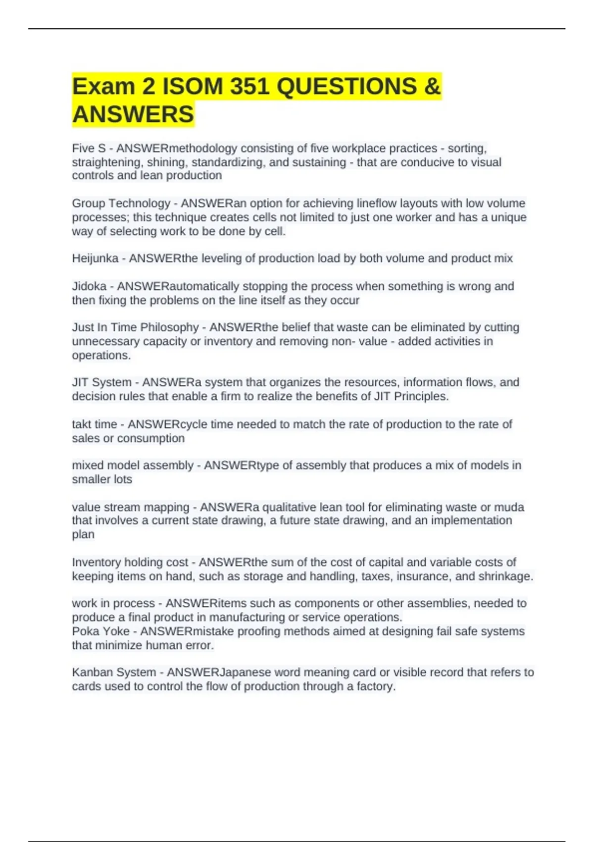 Exam 2 ISOM 351 QUESTIONS & ANSWERS