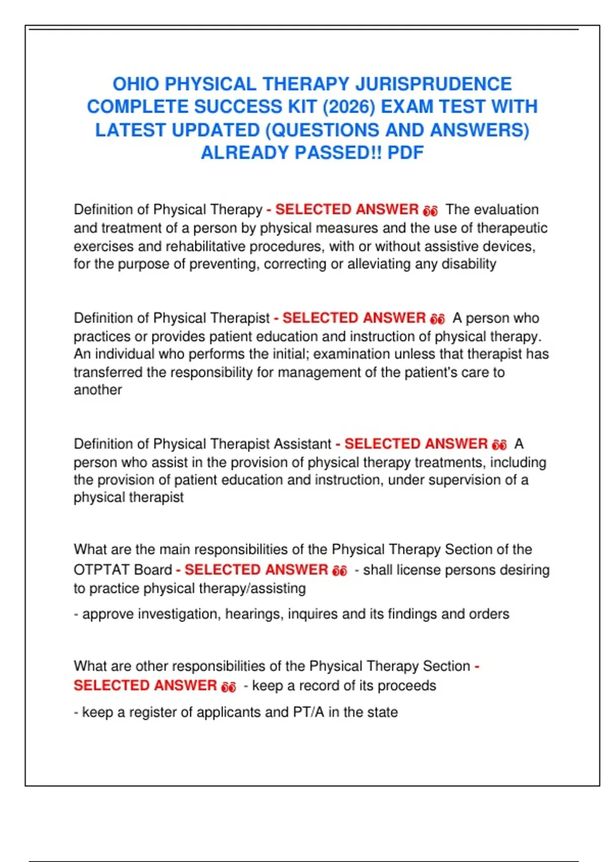 Definition of Physical Therapy - SELECTED ANSWER 👀 The evaluation