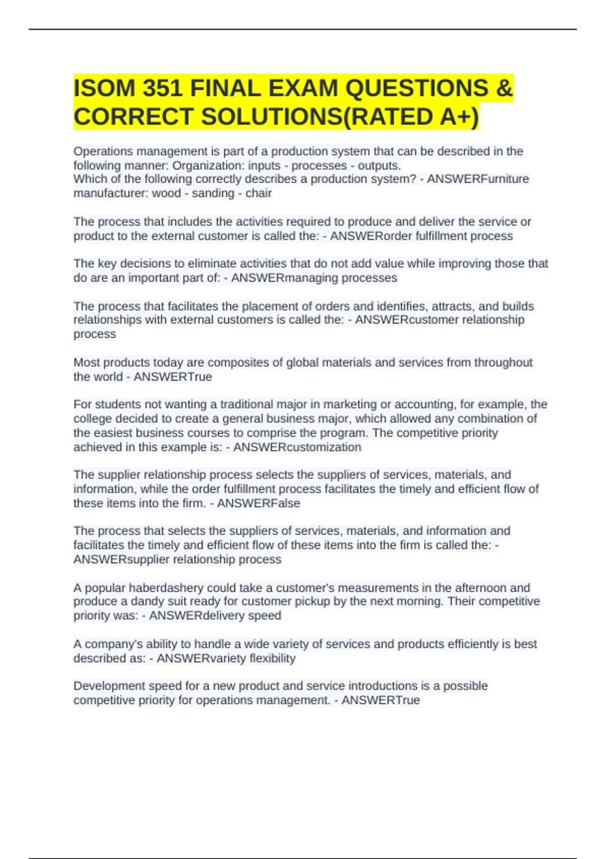 ISOM 351 FINAL EXAM QUESTIONS & CORRECT SOLUTIONS(RATED A+)