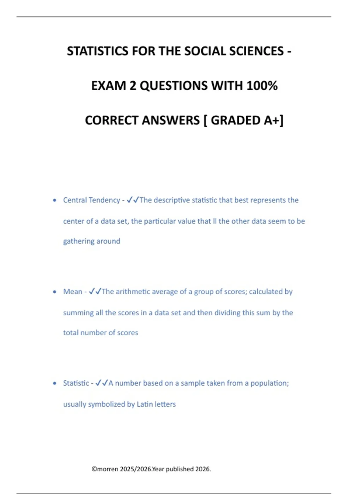 • Median - ✔✔The middle score of all the scores in a sample when the