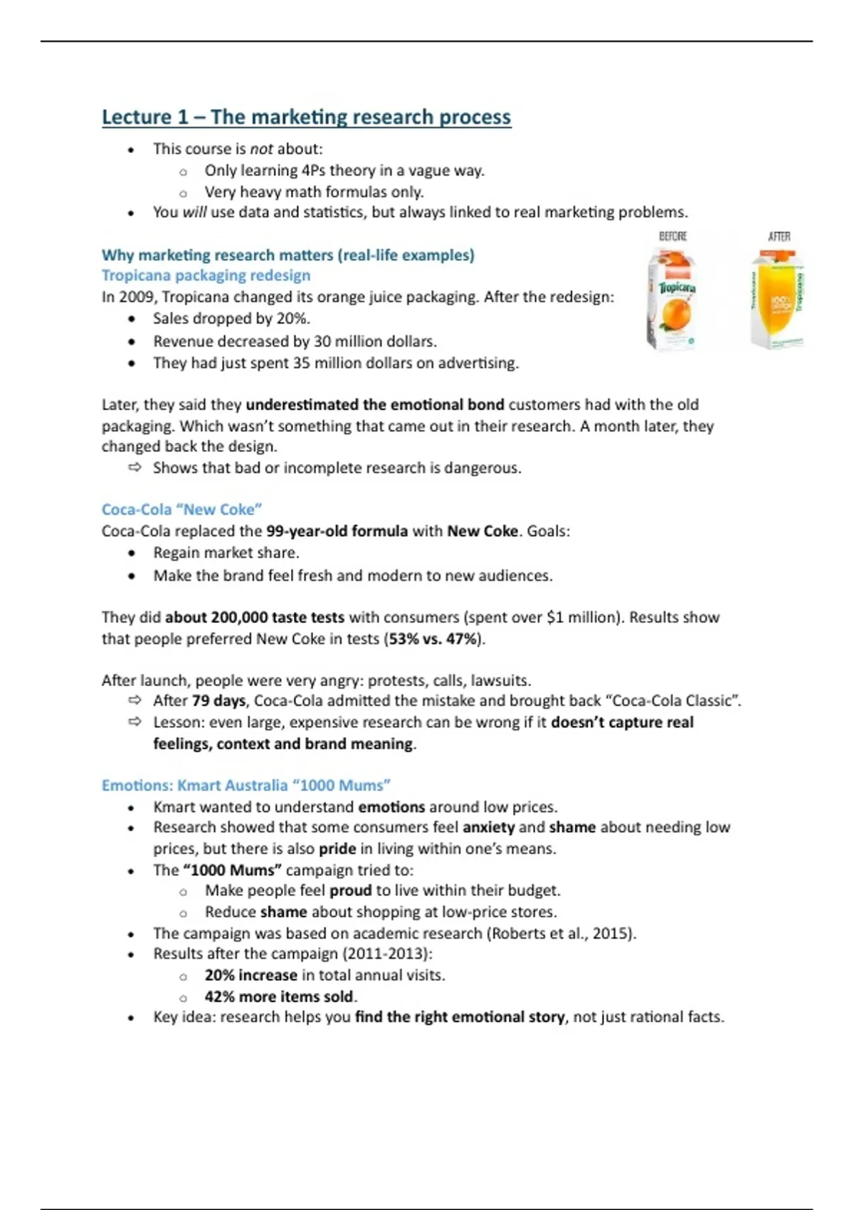 Summary of lectures (including papers) of the course Marketing Research for Pre-MSc at Rijksuniversiteit Groningen. It's written on a more basic-level of the English language, to make it easier to understand.