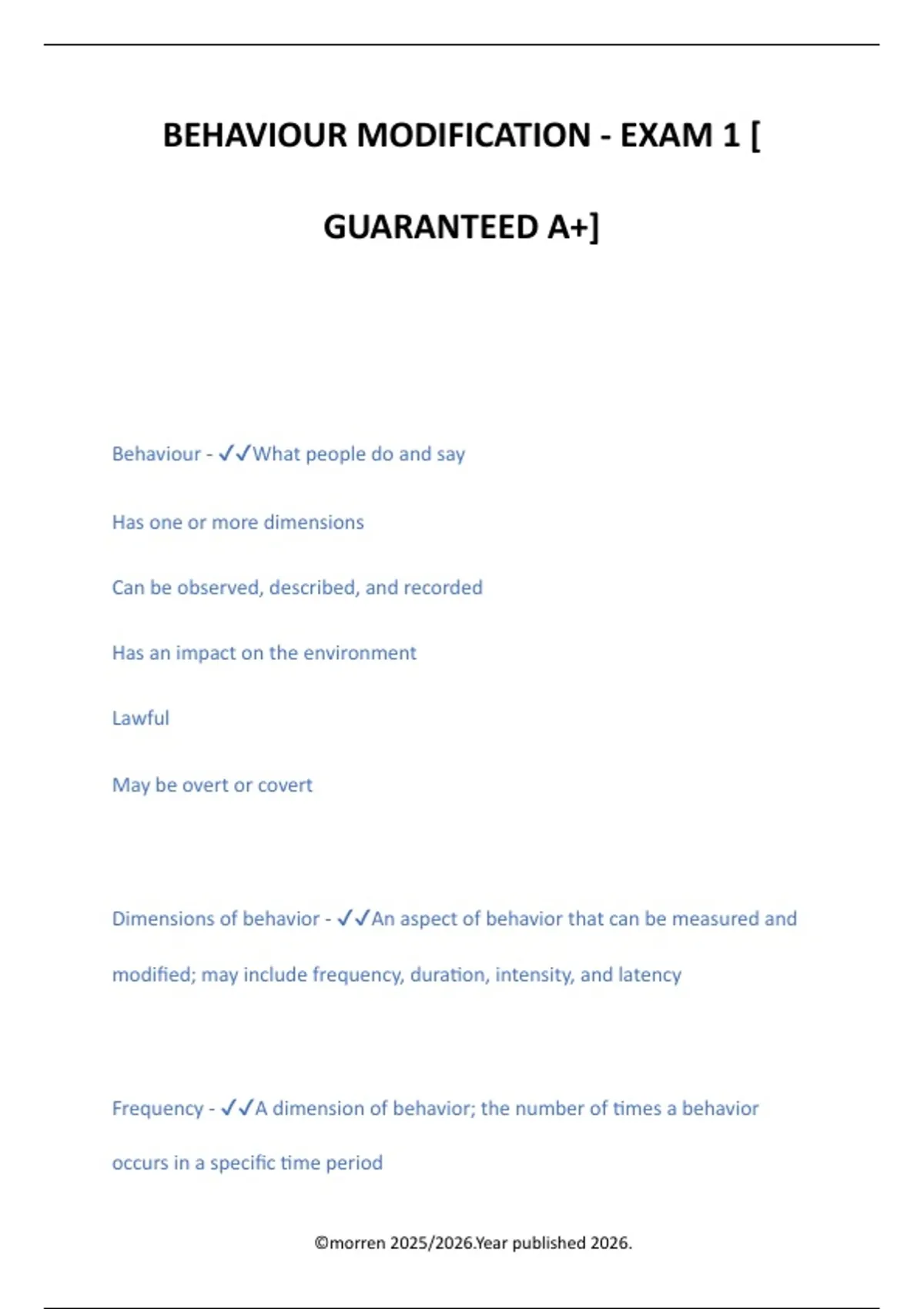 Dimensions of behavior - ✔✔An aspect of behavior that can be measured and