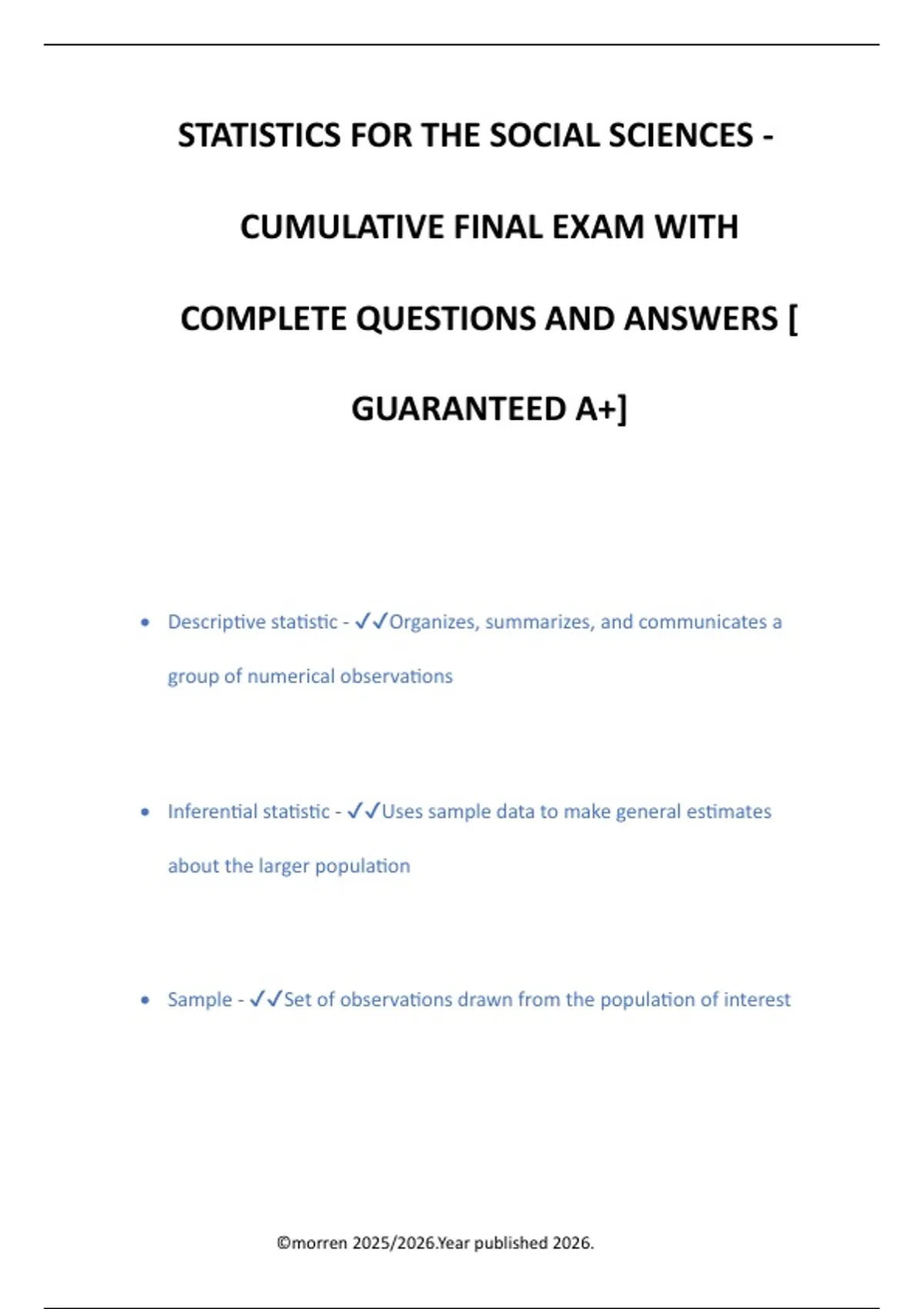 ,• Population - ✔✔Includes all possible observations about which we'd like