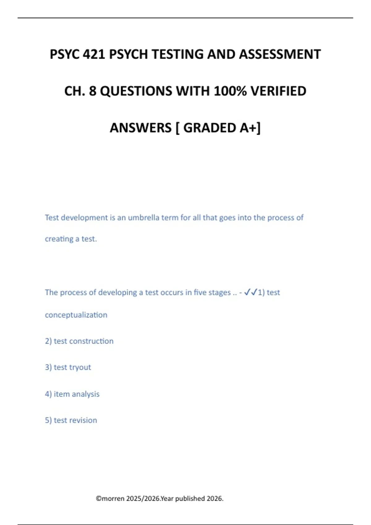 The process of developing a test occurs in five stages .. - ✔✔1) test