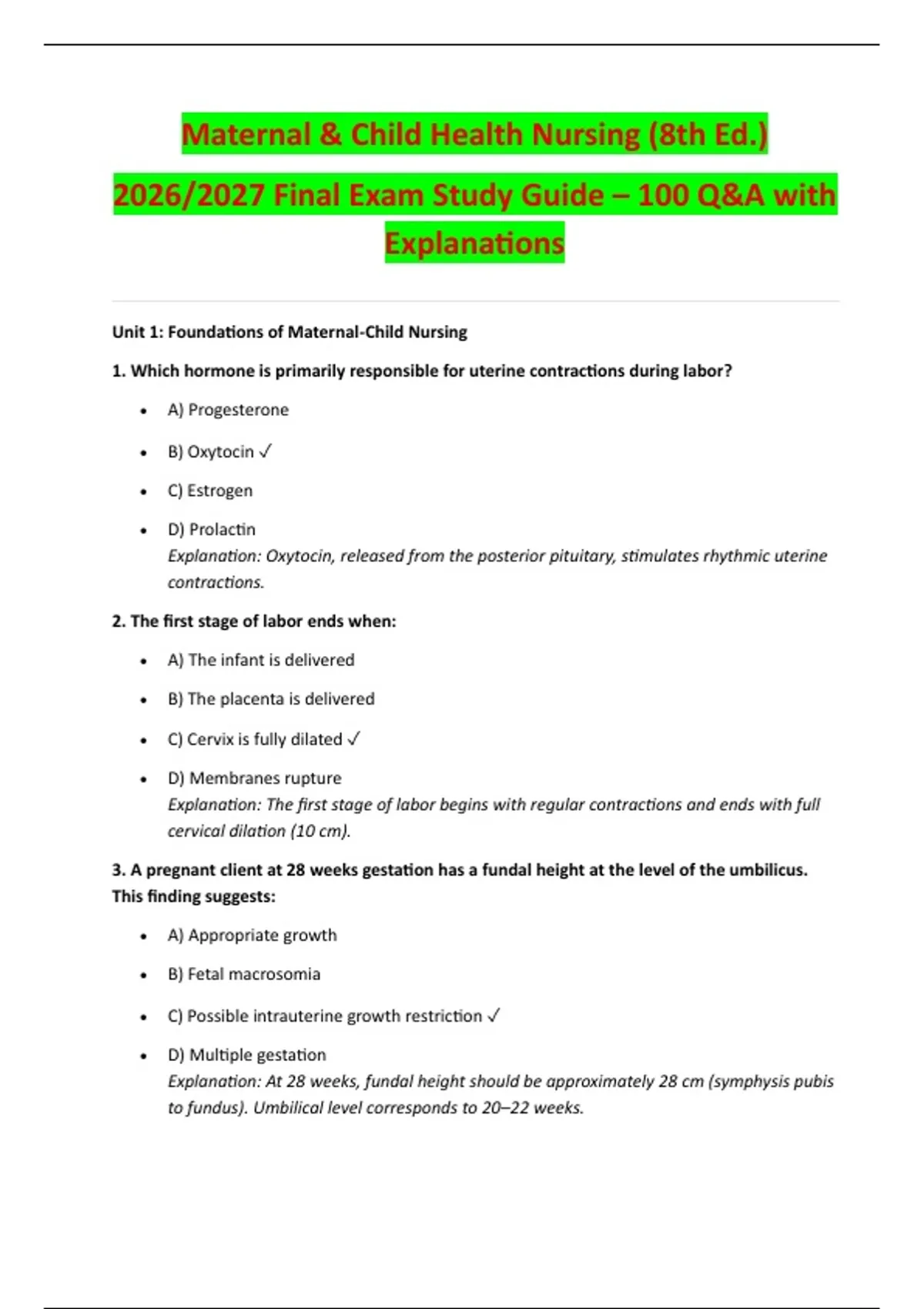 2026/2027 Final Exam Study Guide – 100 Q&A with