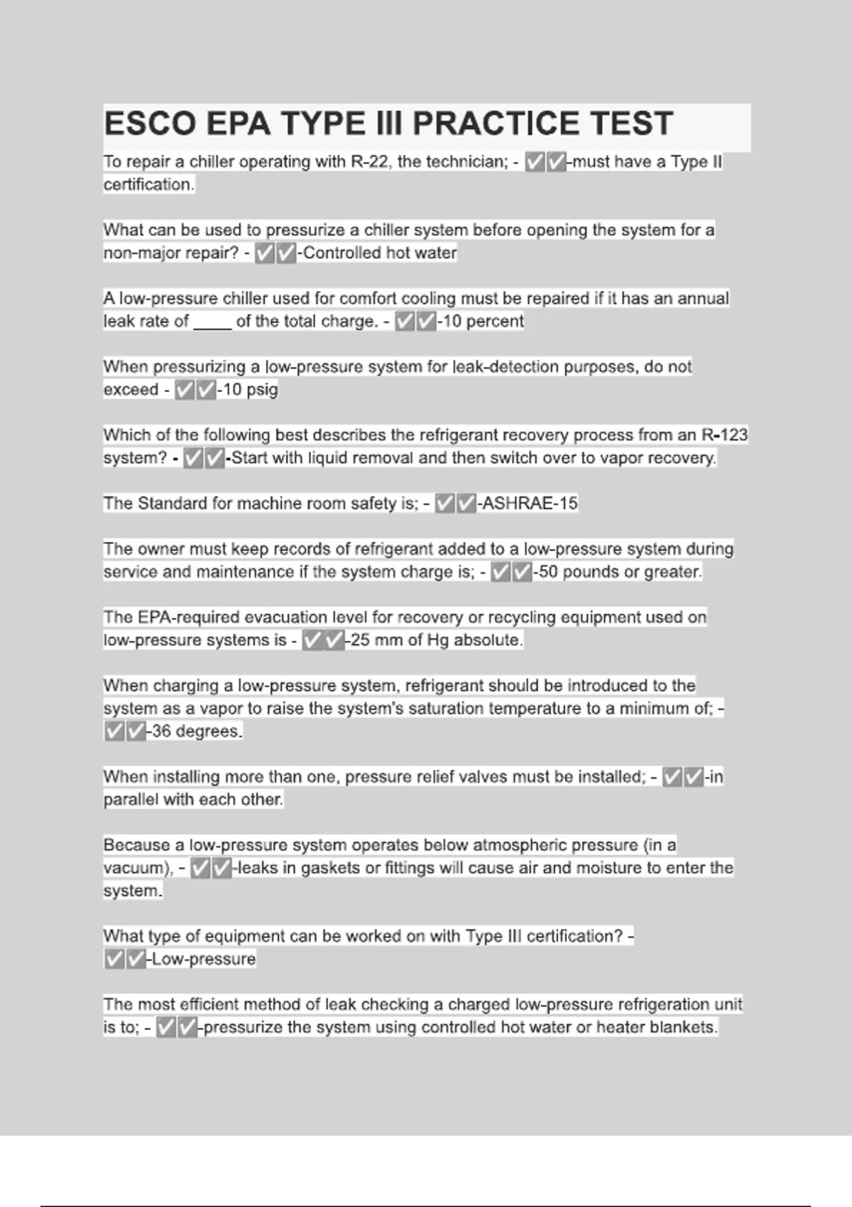 ESCO EPA TYPE III PRACTICE TEST Questions with 100- correct answers