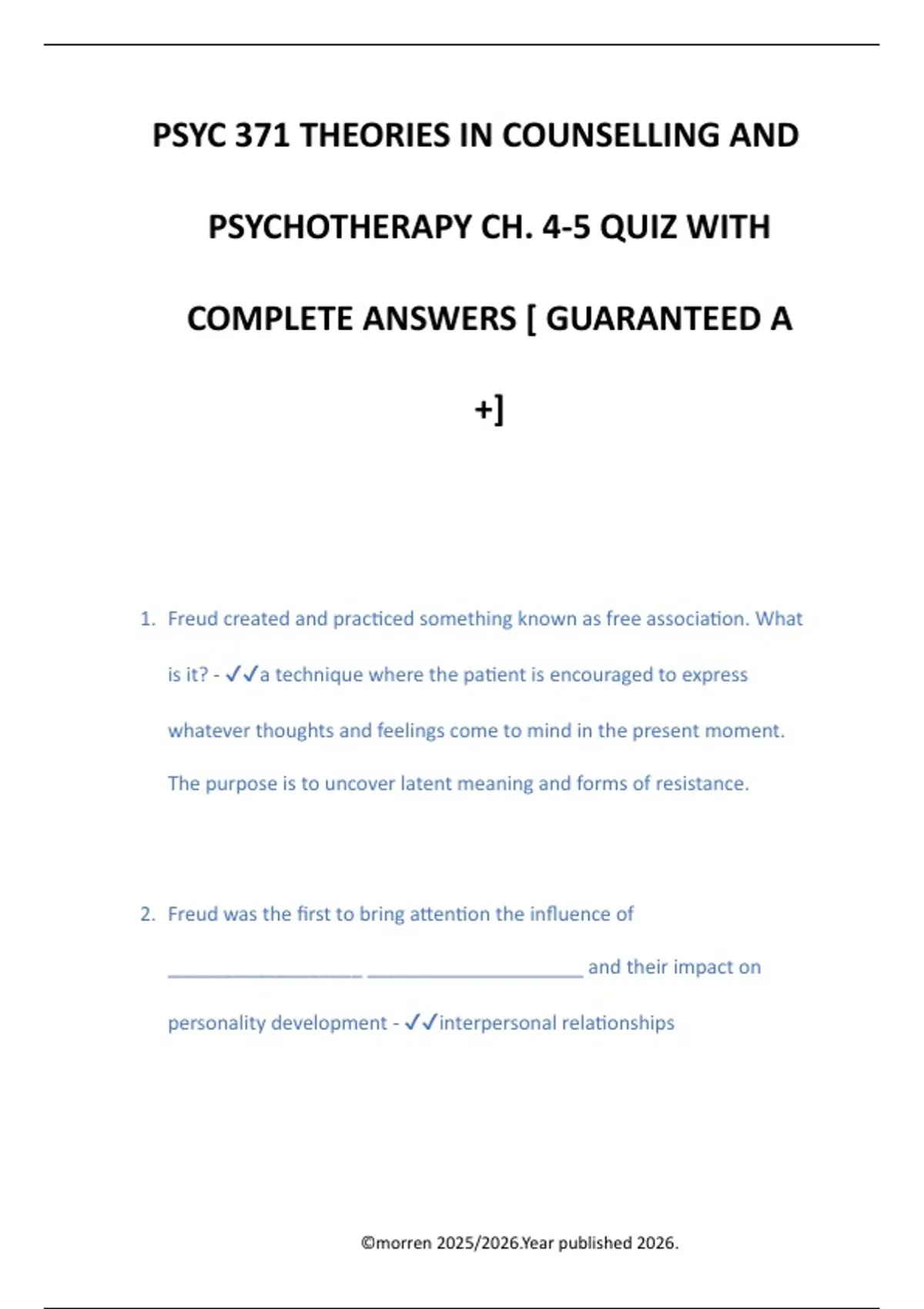 COMPLETE ANSWERS [ GUARANTEED A