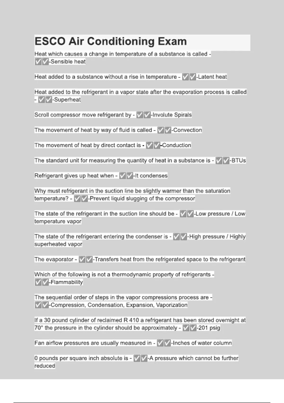 esco air conditioning exam questions with 100 cor