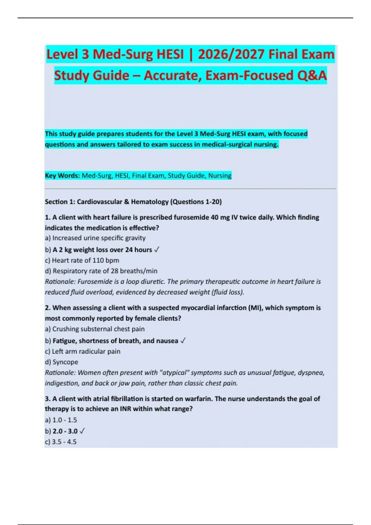Key Words: Med-Surg, HESI, Final Exam, Study Guide, Nursing