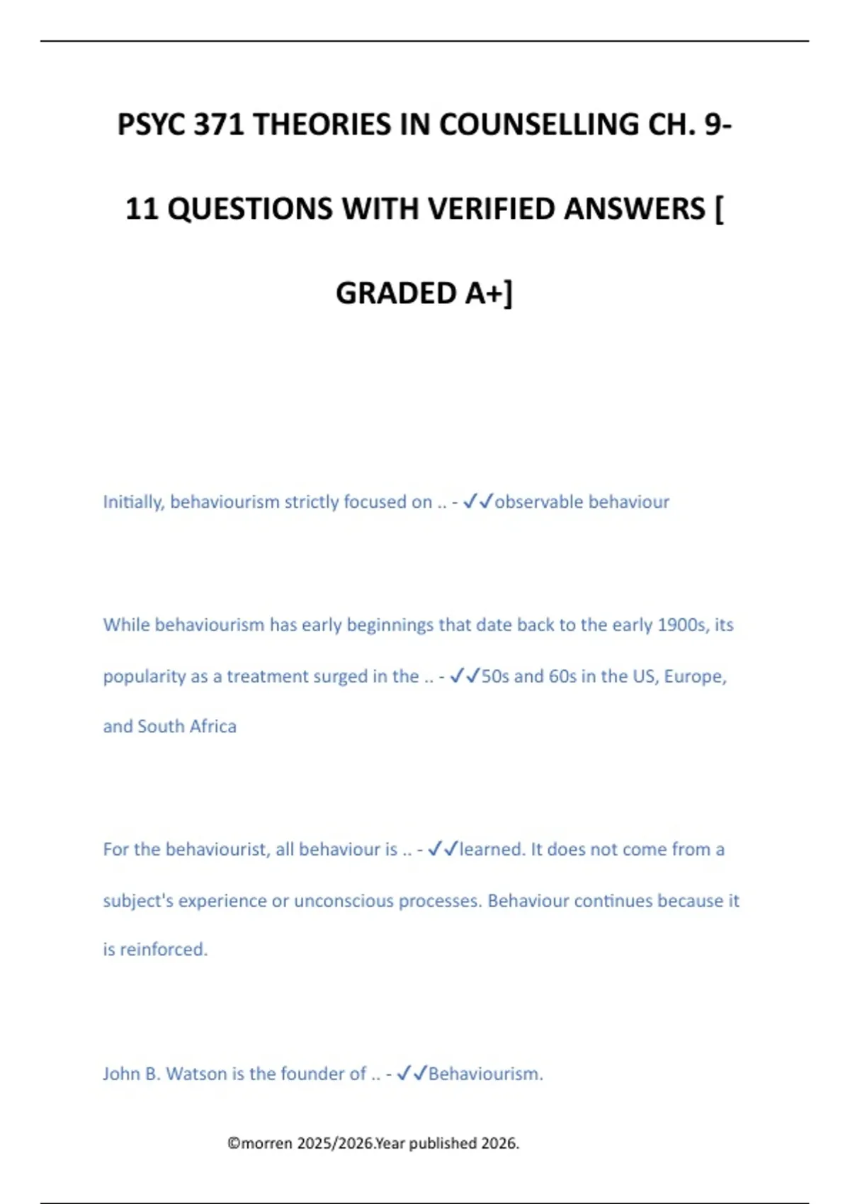 Initially, behaviourism strictly focused on .. - ✔✔observable behaviour