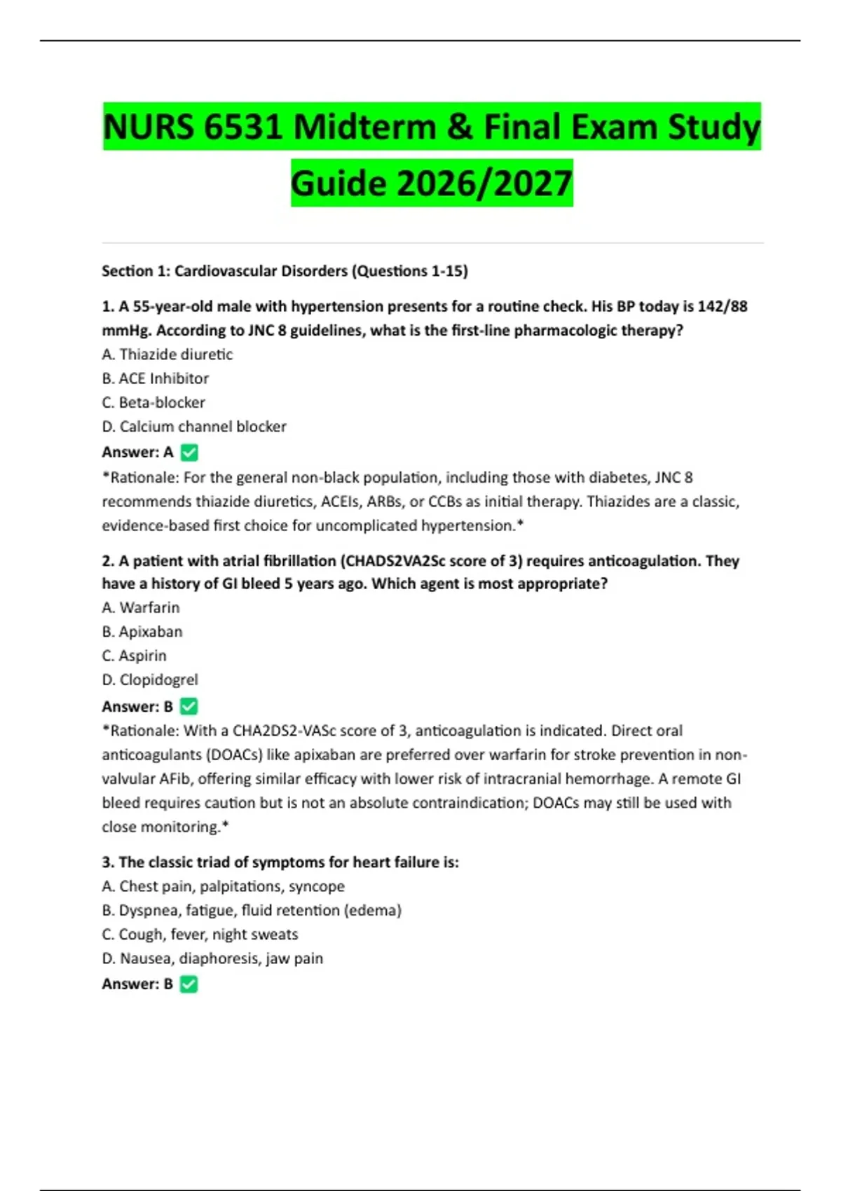 NURS 6531 Midterm & Final Exam Study Guide 2026/2027