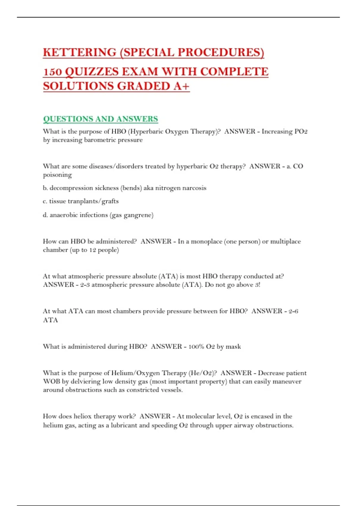 KETTERING (SPECIAL PROCEDURES) 150 QUESTIONS & ANSWERS Graded A+
