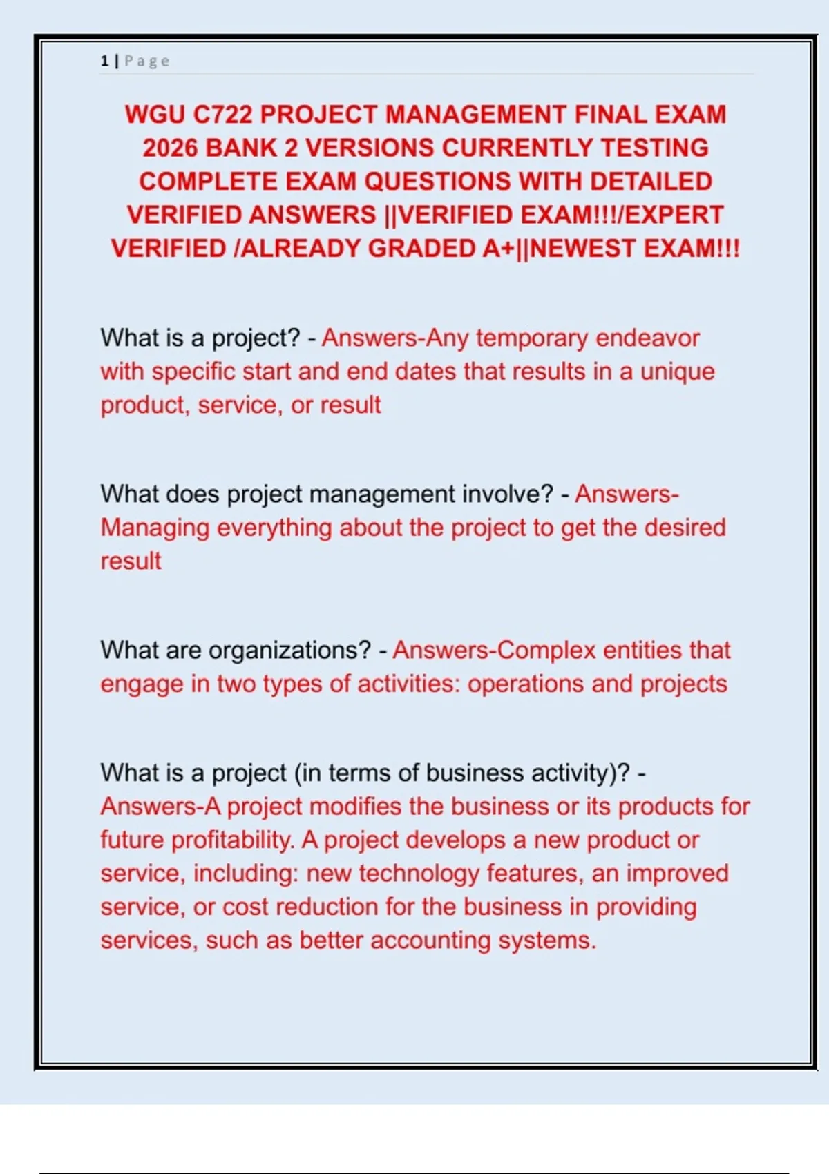 WGU C722 PROJECT MANAGEMENT FINAL EXAM