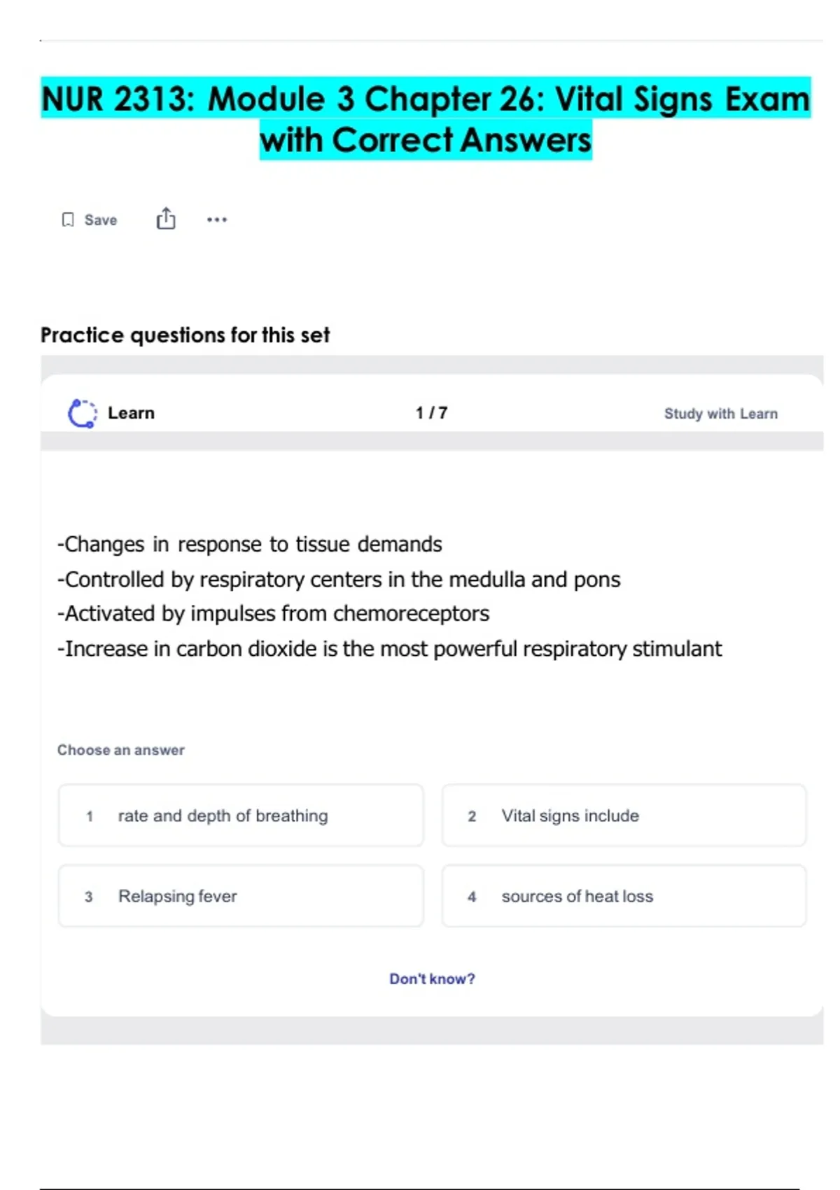 NUR 2313: Module 3 Chapter 26: Vital Signs Exam