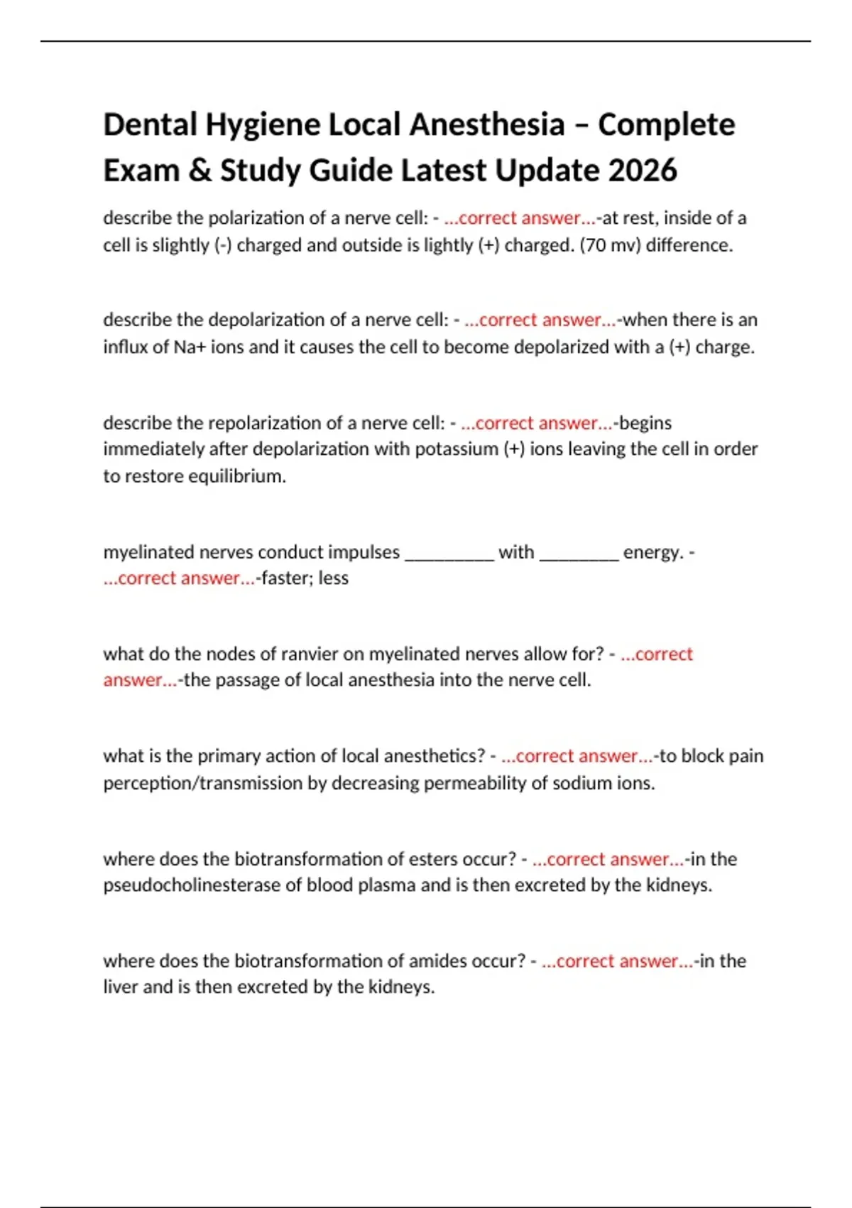 describe the depolarization of a nerve cell: - ...correct answer...-when there is an